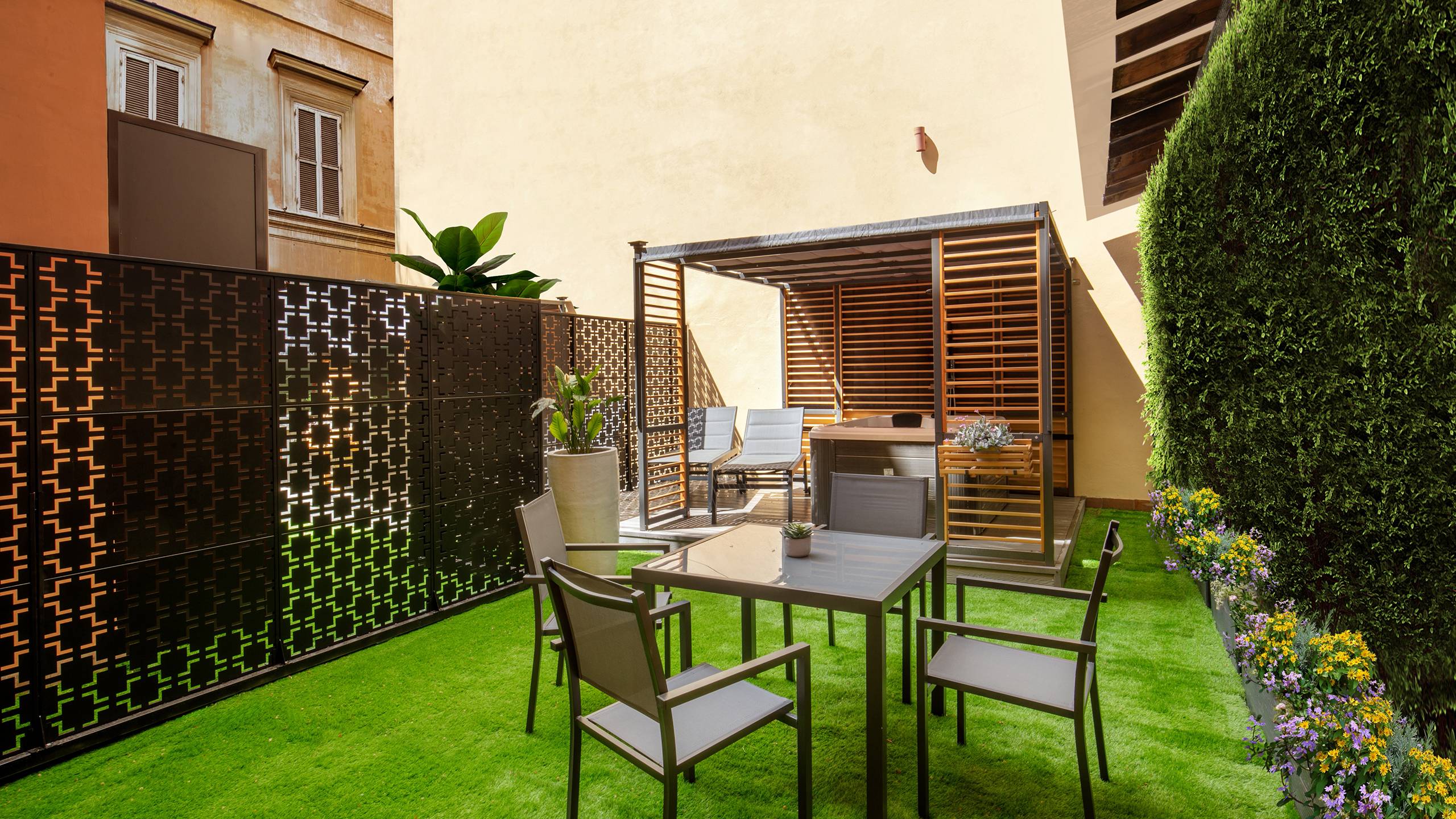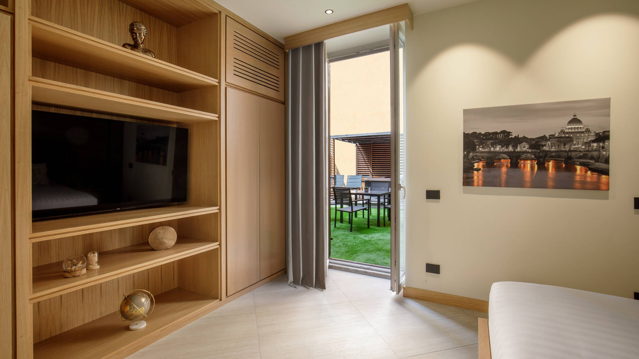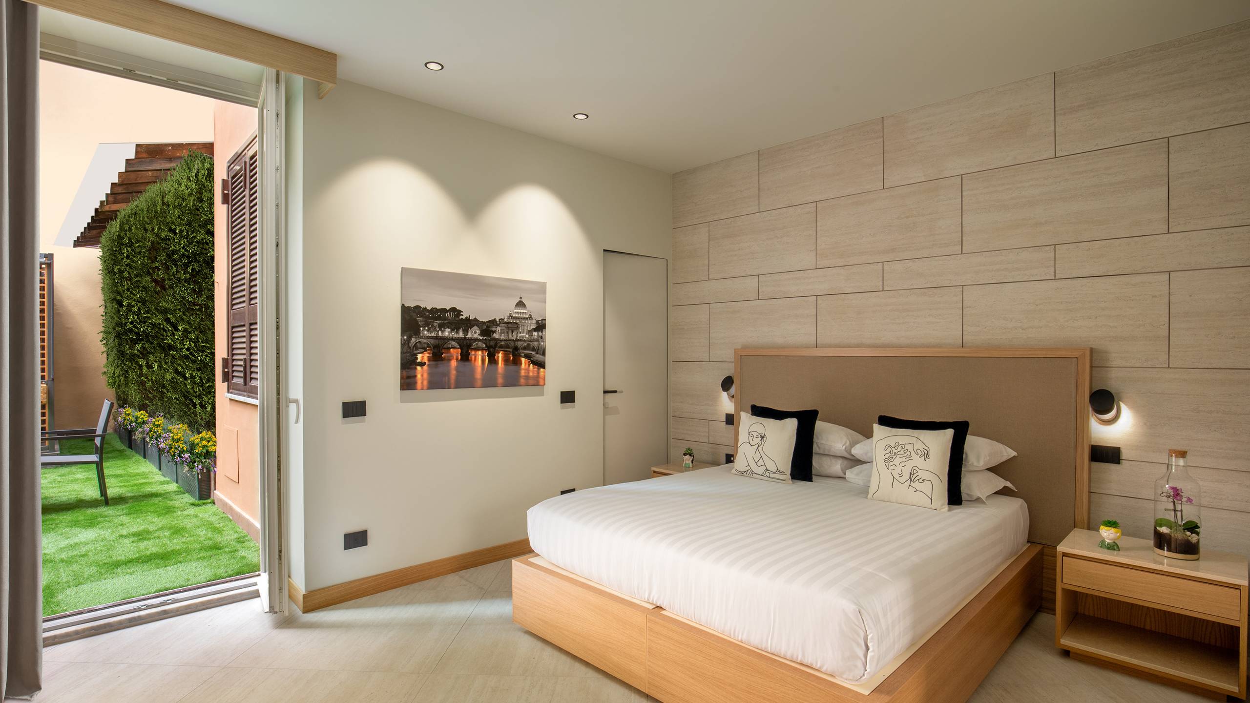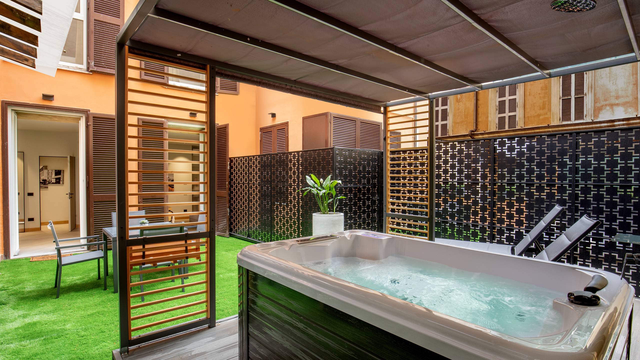 Ripetta Luxury Apartments with terrace and jacuzzi is the quintessence of luxury and elegance in Roman hospitality. The apartments have a generous area of 65 square meters, accommodating up to 4 people. They feature a bedroom, a bathroom with anteroom, a kitchen complete with appliances and dishes, and a living room with sofa bed. The highlight of these apartments is a spectacular furnished terrace, where guests can enjoy moments of relaxation outdoors. The pinnacle of luxury is the presence of a private jacuzzi on the terrace. Inside the apartments, guests will find a welcome kit that includes a Nespresso machine, a kettle and a selection of snacks.