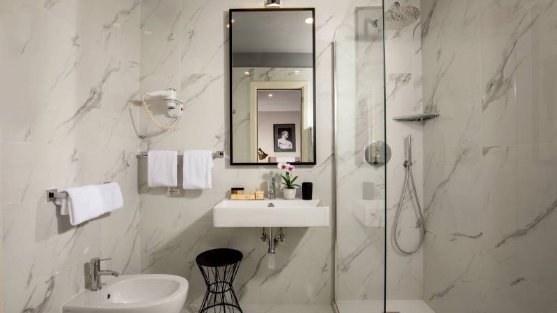 Les chambres superior du Condotti Boutique Hotel, situées dans le bâtiment principal, représentent un choix d’hébergement de prestige, offrant une superficie plus grande, d’environ 17 mètres carrés. Avec une capacité maximale de 2 personnes, les chambres superior peuvent être configurées avec un lit double ou deux lits séparés, selon vos préférences personnelles. Le mobilier et les détails des chambres ont été pris en charge avec une grande attention, assurant une atmosphère de luxe et de raffinement.